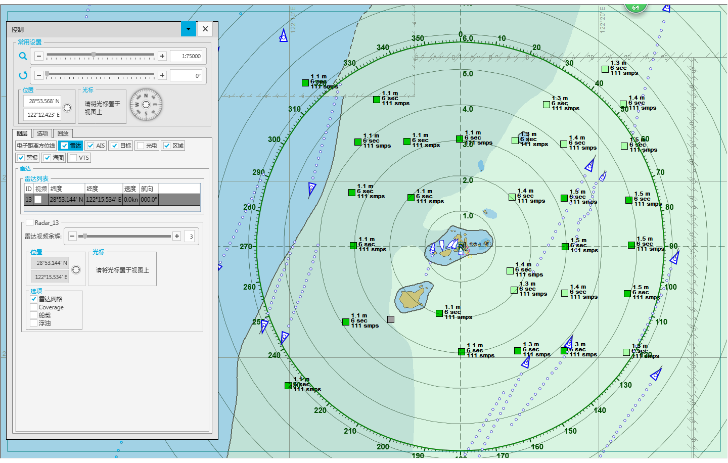本產(chǎn)品通過(guò)雷達(dá)原始回波信號(hào)對(duì)海面波浪進(jìn)行監(jiān)測(cè),反演附近海域的海浪參數(shù)及海流計(jì)算,生成虛擬浮標(biāo)高度變化曲線,海浪數(shù)據(jù)可進(jìn)行實(shí)時(shí)記錄并可選擇任意時(shí)間點(diǎn)進(jìn)行回放,顯控終端界面可顯示、查詢、統(tǒng)計(jì)歷史海浪參數(shù)數(shù)據(jù)。